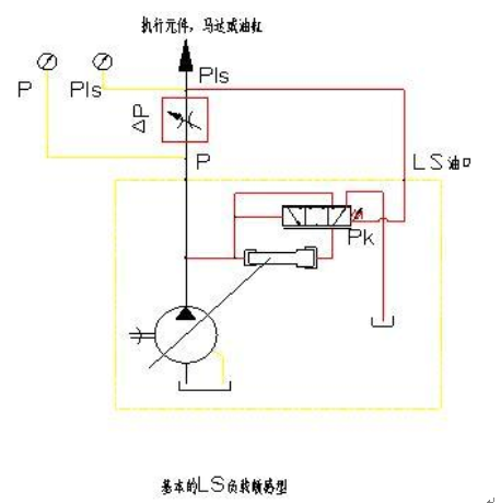 附圖圖是負載敏感變量泵的工作原理圖,此原理圖是最基本...